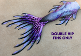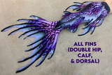 Finfolk fabric tails are designed to be the most beautiful, realistic fabric mermaid tails available today! Our swimmable fabric tails are created from 1mm, 4 way stretch scuba knit with sublimation printed designs that are realistically detailed and vibrant. Featuring highly desired, full sized Finfolk flukes, all fabric tails come with a durable vinyl monofin casing inside of the tail. Monofins are easily installed, and rest inside the casing secured by velcro, providing graceful flow and movement in the water. These tails will fit a variety of monofins up to the dimensions listed below. We recommend monofins with short, stiff blades such as the FINIS Shooter monofin or Adult Mermaid Linden by Bodyglove monofin
