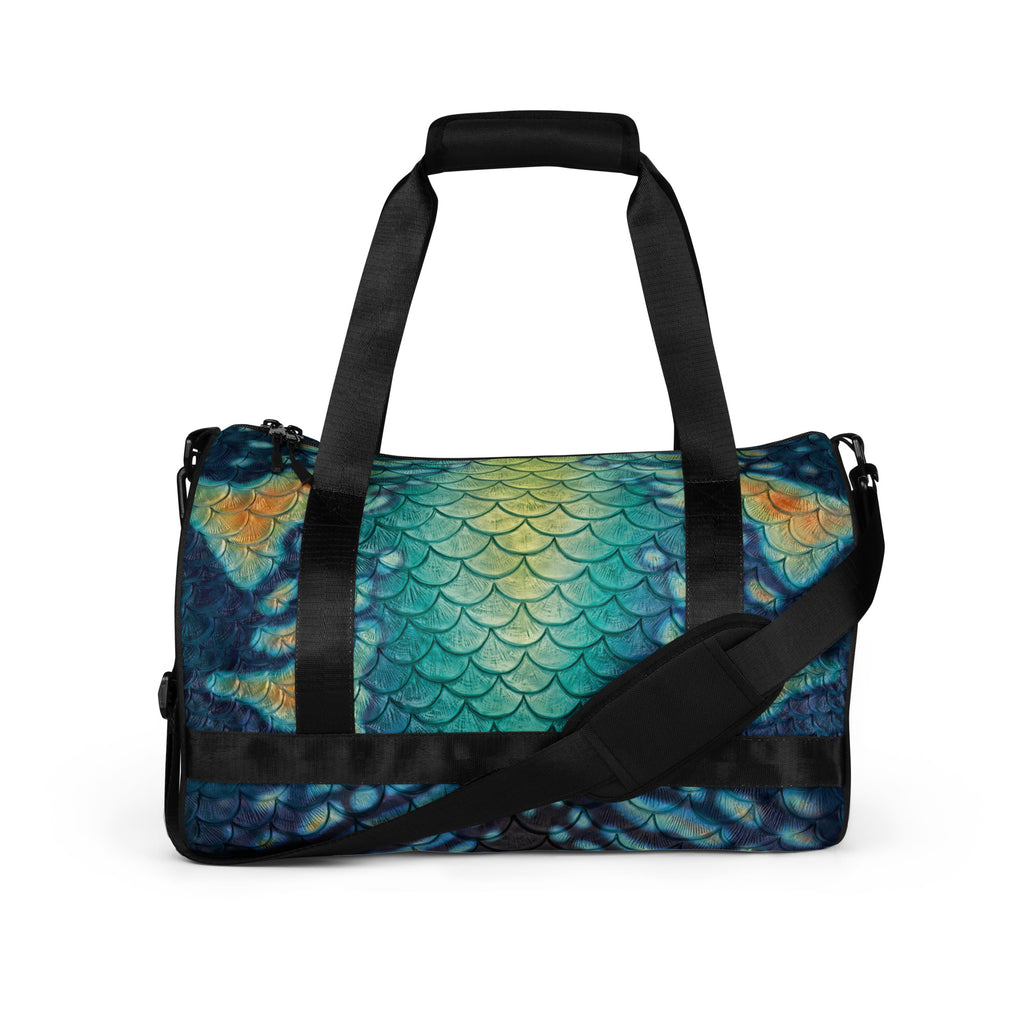 Your favorite Finfolk duffle bag is now available in a smaller gym bag size for the traveling mermaid/merman/merson! Have a place for your towels, tops, accessories, and other thingamabobs. Going to a mermaid gig or just need a new gym bag? This gym bag has ample space and is a great addition to help you swim about your mermaid day.