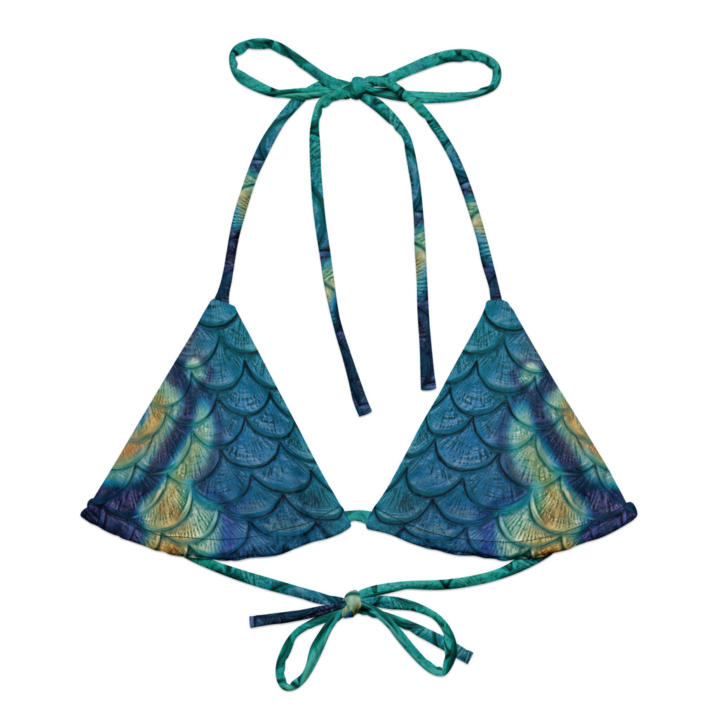 This adjustable triangle bikini top is made from soft recycled polyester, with UPF 50+ and versatile, stretchy straps ready for styling. Wear this top multiple ways with or without a tail for a classic mermaid scale look.