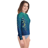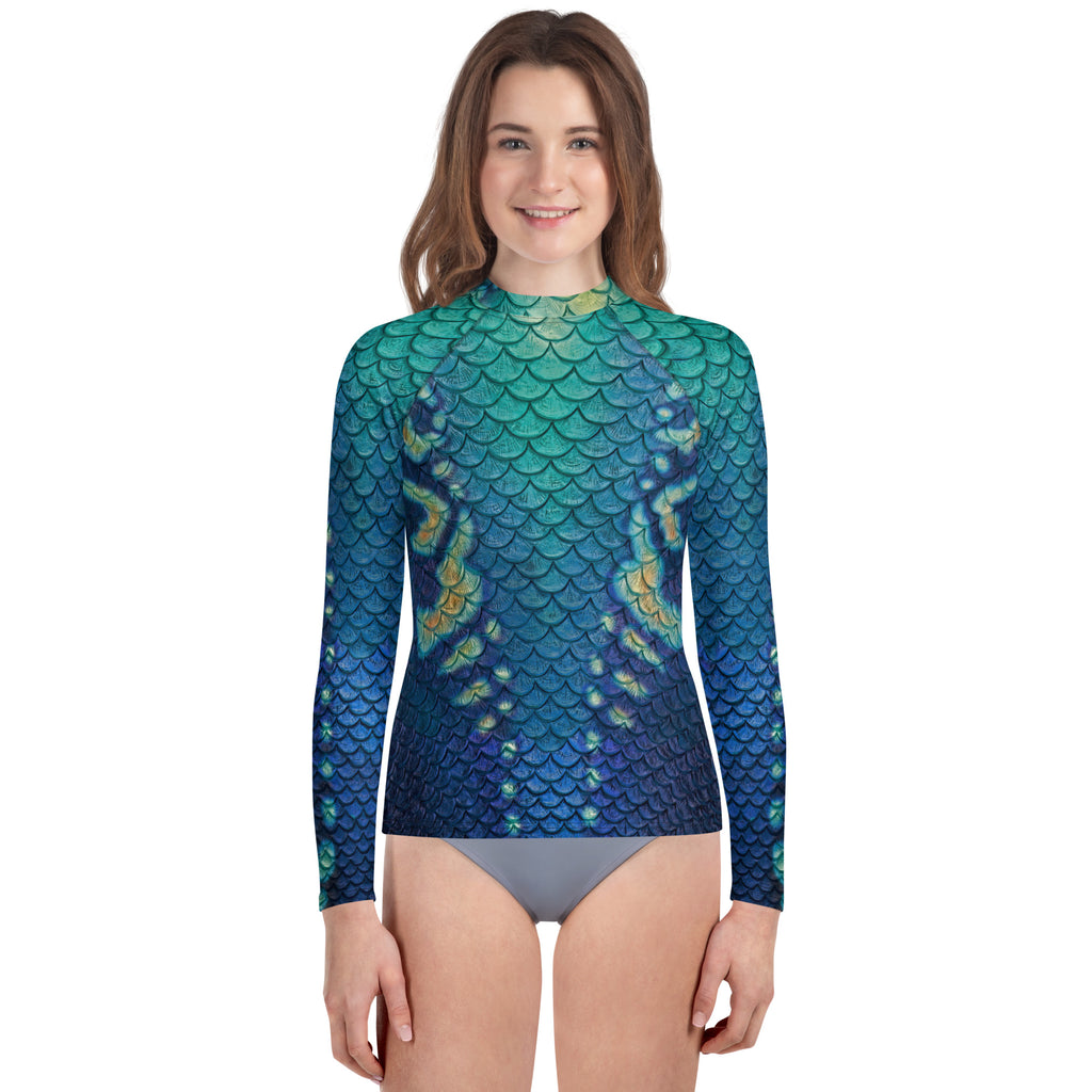 For your little guppies, rep your scales wherever you go with this youth rash guard! It protects from the sun, wind, and other elements whether on land or in sea!