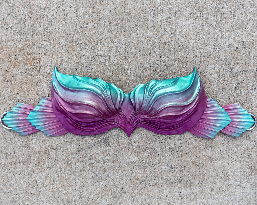 The popular signature silicone top is an iconic Finfolk top design. Previously assembled over a bra base, these tops are now created without a bra base, using criss-crossing lycra straps that tie around stainless steel O-rings in the back to disperse pressure points and strain evenly, instead of only across your neck like typical halter styles which means no more bulkiness or heavy sogginess.