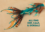 Finfolk fabric tails are designed to be the most beautiful, realistic fabric mermaid tails available today! Our swimmable fabric tails are created from 1mm, 4 way stretch scuba knit with sublimation printed designs that are realistically detailed and vibrant. Featuring highly desired, full sized Finfolk flukes, all fabric tails come with a durable vinyl monofin casing inside of the tail. Monofins are easily installed, and rest inside the casing secured by velcro, providing graceful flow and movement in the water. These tails will fit a variety of monofins up to the dimensions listed below. We recommend monofins with short, stiff blades such as the FINIS Shooter monofin or Adult Mermaid Linden by Bodyglove monofin