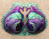 An ode to our Finfolk Merchant Company throne, the Cimarron Seas silicone top features two galloping kelpies facing each other atop cresting waves joined in center with matching hand-crafted cabochon. These tops are 100% silicone and use criss-crossing lycra straps that tie around stainless steel O-rings in the back to disperse pressure points and strain evenly, instead of only across your neck like typical halter styles, meaning no more bulkiness or heavy sogginess.