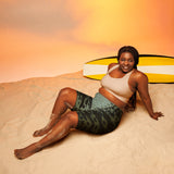 Please note: contact with rough surfaces should be avoided since that can pull out the white fibers in the fabric, damaging the shorts. Additionally, print alignment may vary due to the curved nature of these garments.
