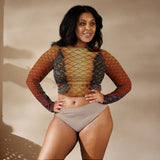 Rep your scales wherever you go with this cropped rash guard! It protects from the sun, wind, and other elements whether on land or in sea!