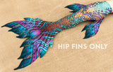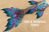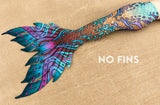 Finfolk fabric tails are designed to be the most beautiful, realistic fabric mermaid tails available today! Our swimmable fabric tails are created from 1mm, 4 way stretch scuba knit with sublimation printed designs that are realistically detailed and vibrant. Featuring highly desired, full sized Finfolk flukes, all fabric tails come with a durable vinyl monofin casing built inside of the tail. Monofins are easily installed, and rest inside of the casing secured by velcro, providing graceful flow and movement in the water. These tails will fit a variety of monofins up to the dimensions listed below. We recommend monofins with short, stiff blades such as the FINIS Shooter monofin.
