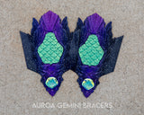 Our gorgeous Gemini Arm Bracers are made from the same platinum cure silicone and paints as our full silicone tops and mermaid tails. They are skin safe, water safe, and will last for years to come! Each bracer features a matching iridescent mythic scale and matching glass crystals.