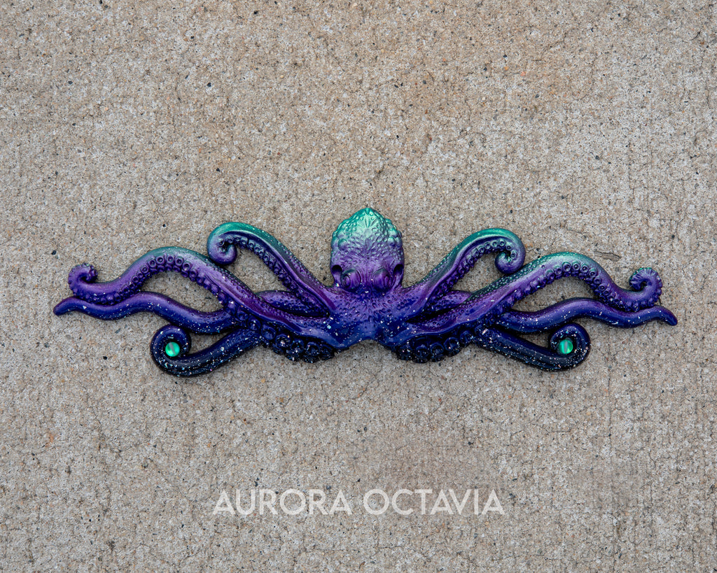 The octopus itself measures approximately 12 inches long by 3 inches wide. Circlets are sent with elastic band straps already attached for immediate wear. Ribbon and beads may vary.