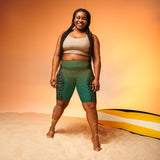 We're all mermaids at heart all day, everyday. But let's face it, you can't wear a tail everywhere you go. On days you have to trade in your fins for legs, show your true mer spirit with these high-waisted bike shorts. These versatile shorts will look stunning with all kinds of outfits on land as well as under tails! Oh, and did we mention it has a pocket?