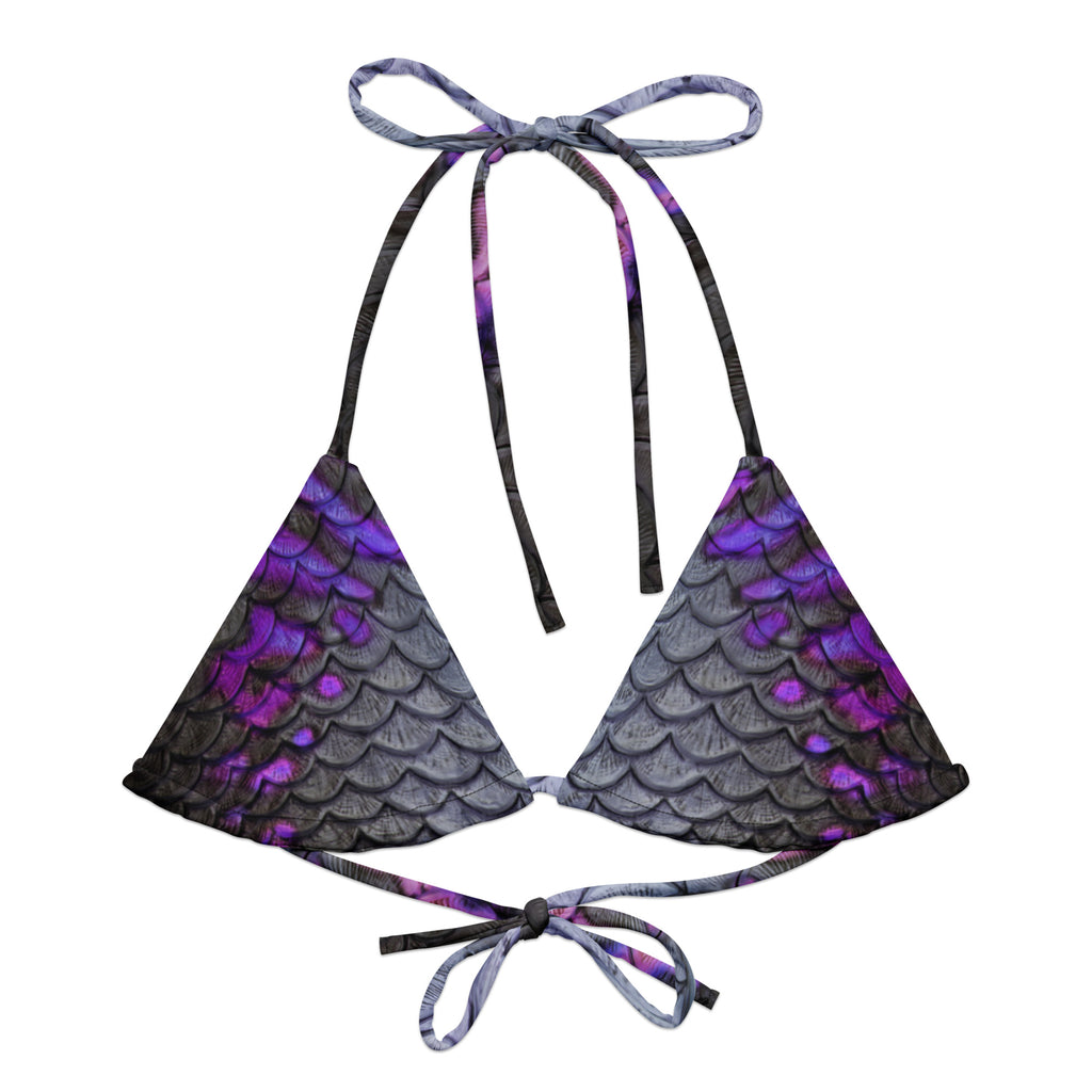This adjustable triangle bikini top is made from soft recycled polyester, with UPF 50+ and versatile, stretchy straps ready for styling. Wear this top multiple ways with or without a tail for a classic mermaid scale look.