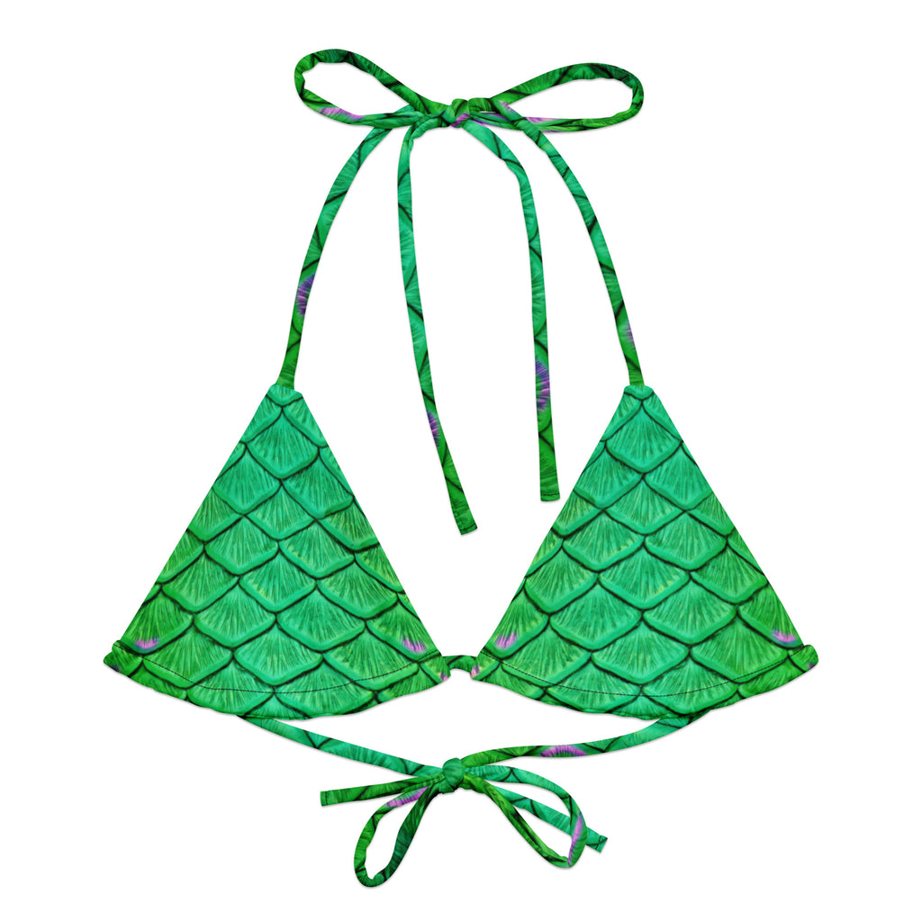 This adjustable triangle bikini top is made from soft recycled polyester, with UPF 50+ and versatile, stretchy straps ready for styling. Wear this top multiple ways with or without a tail for a classic mermaid scale look.