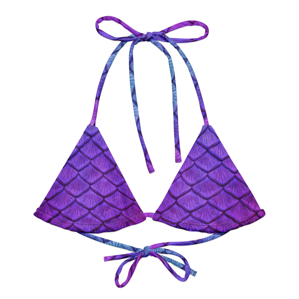 This adjustable triangle bikini top is made from soft recycled polyester, with UPF 50+ and versatile, stretchy straps ready for styling. Wear this top multiple ways with or without a tail for a classic mermaid scale look.