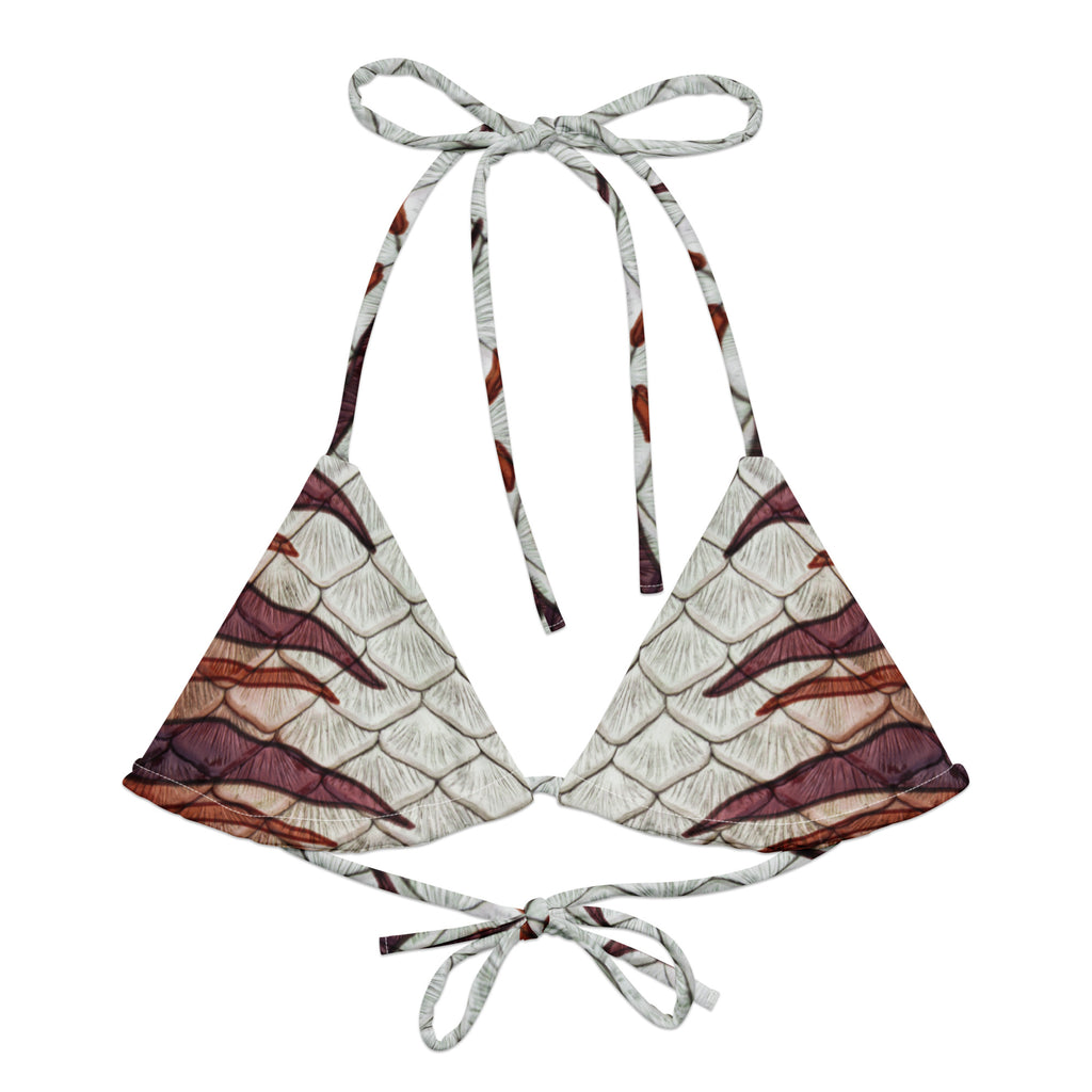 This adjustable triangle bikini top is made from soft recycled polyester, with UPF 50+ and versatile, stretchy straps ready for styling. Wear this top multiple ways with or without a tail for a classic mermaid scale look.