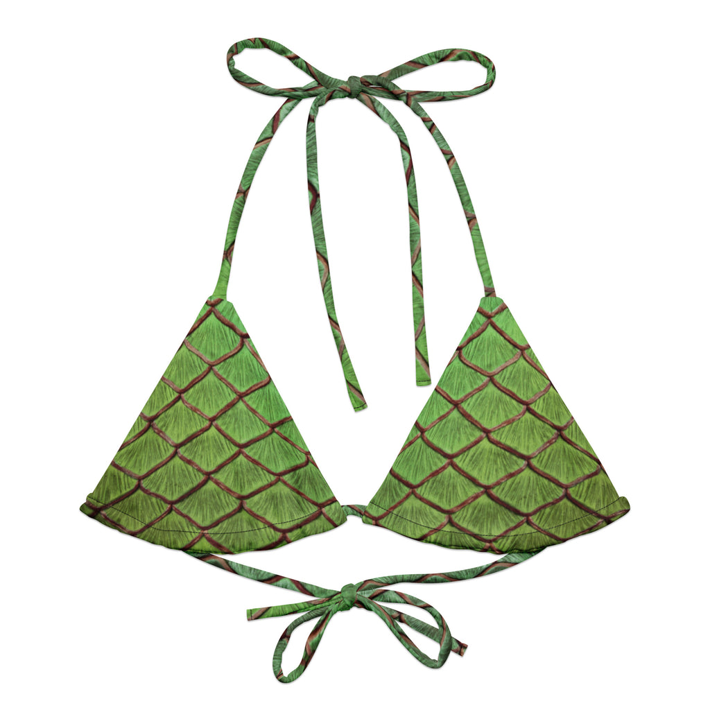 This adjustable triangle bikini top is made from soft recycled polyester, with UPF 50+ and versatile, stretchy straps ready for styling. Wear this top multiple ways with or without a tail for a classic mermaid scale look.