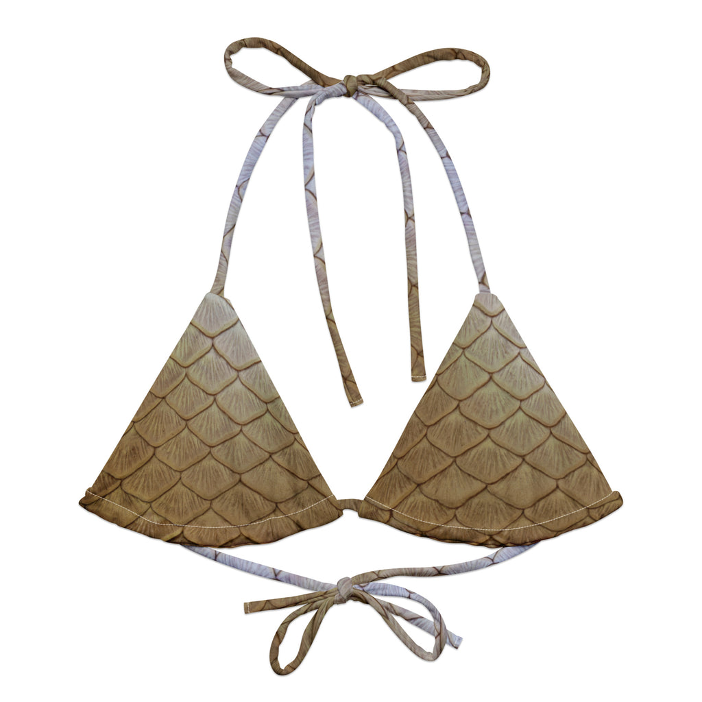 This adjustable triangle bikini top is made from soft recycled polyester, with UPF 50+ and versatile, stretchy straps ready for styling. Wear this top multiple ways with or without a tail for a classic mermaid scale look.