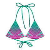 This adjustable triangle bikini top is made from soft recycled polyester, with UPF 50+ and versatile, stretchy straps ready for styling. Wear this top multiple ways with or without a tail for a classic mermaid scale look.