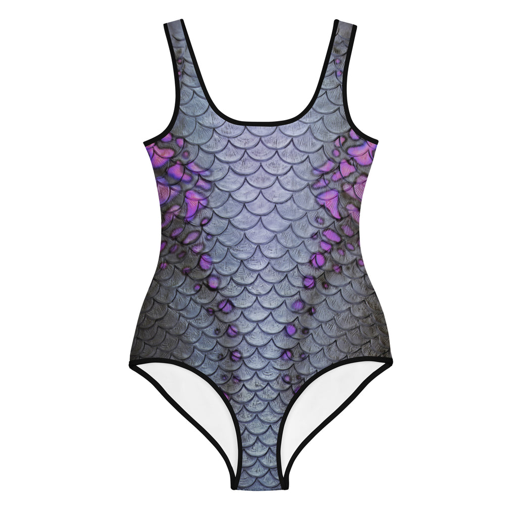 For your little guppies, show your true mermaid spirit with this colorful and vibrant youth one piece swimsuit! Features a double-layered front with 38–40 UPF.