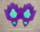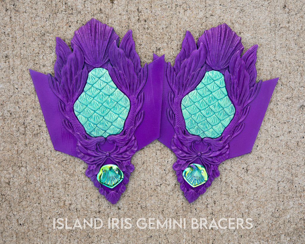 Our gorgeous Gemini Arm Bracers are made from the same platinum cure silicone and paints as our full silicone tops and mermaid tails. They are skin safe, water safe, and will last for years to come! Each bracer features a matching iridescent mythic scale and matching glass crystals.
