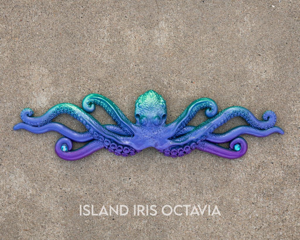 The octopus itself measures approximately 12 inches long by 3 inches wide. Circlets are sent with ribbon ties already attached for immediate wear. Ribbon and beads may vary.