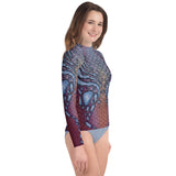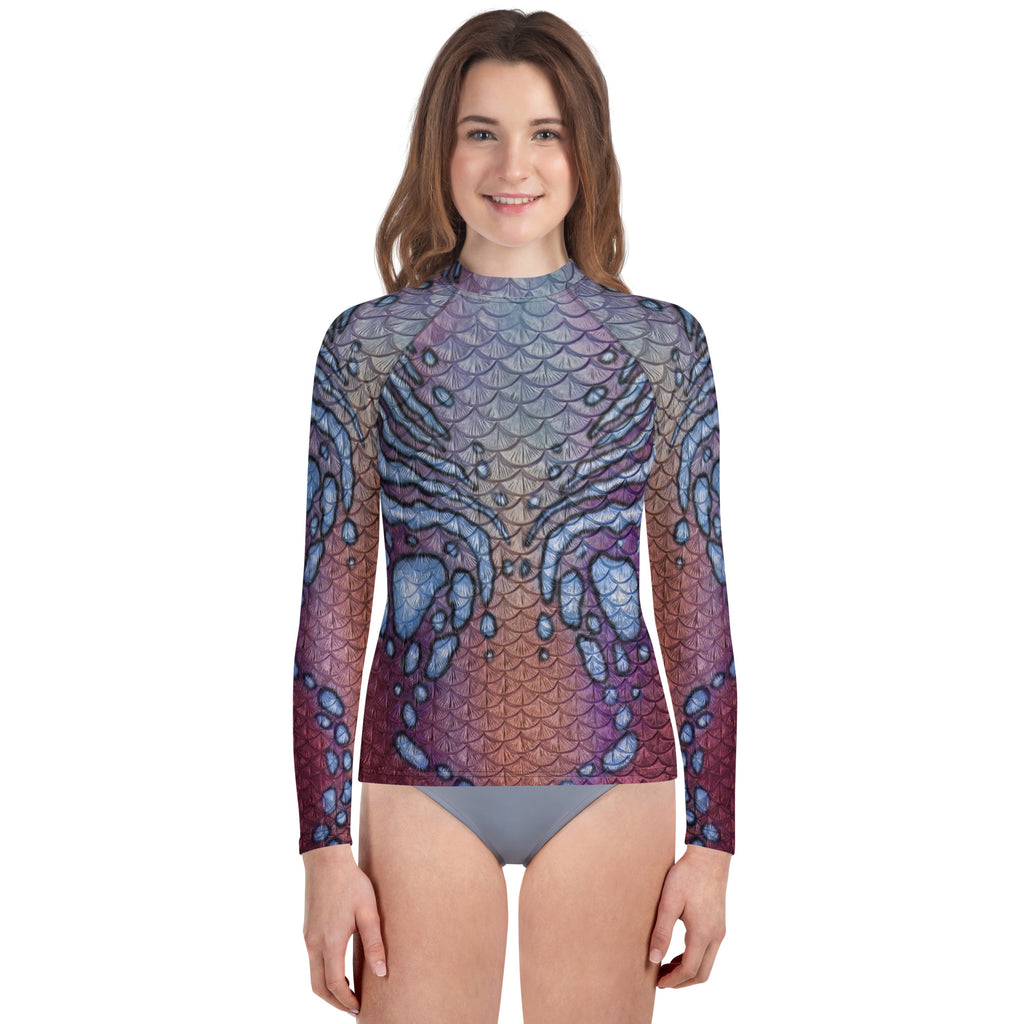 For your little guppies, rep your scales wherever you go with this youth rash guard! It protects from the sun, wind, and other elements whether on land or in sea!