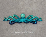 The octopus itself measures approximately 12 inches long by 3 inches wide. Circlets are sent with elastic band straps already attached for immediate wear. Ribbon and beads may vary.