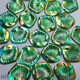 Finfolk Productions Iridescent Mythic Scales are a one-of-a-kind product! Perfect to create mermaid accessories, or even your own tail! These scales are resin with an iridescent finish, and come ready to be sewn, glued, or tied onto any project.