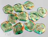 Finfolk Productions Iridescent Mythic Scales are a one-of-a-kind product! Perfect to create mermaid accessories, or even your own tail! These scales are resin with an iridescent finish, and come ready to be sewn, glued, or tied onto any project.
