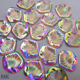 Finfolk Productions Iridescent Mythic Scales are a one-of-a-kind product! Perfect to create mermaid accessories, or even your own tail! These scales are resin with an iridescent finish, and come ready to be sewn, glued, or tied onto any project.