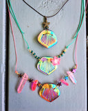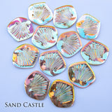 Finfolk Productions Iridescent Mythic Scales are a one-of-a-kind product! Perfect to create mermaid accessories, or even your own tail! These scales are resin with an iridescent finish, and come ready to be sewn, glued, or tied onto any project.