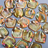 Finfolk Productions Iridescent Mythic Scales are a one-of-a-kind product! Perfect to create mermaid accessories, or even your own tail! These scales are resin with an iridescent finish, and come ready to be sewn, glued, or tied onto any project.