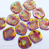 Finfolk Productions Iridescent Mythic Scales are a one-of-a-kind product! Perfect to create mermaid accessories, or even your own tail! These scales are resin with an iridescent finish, and come ready to be sewn, glued, or tied onto any project.
