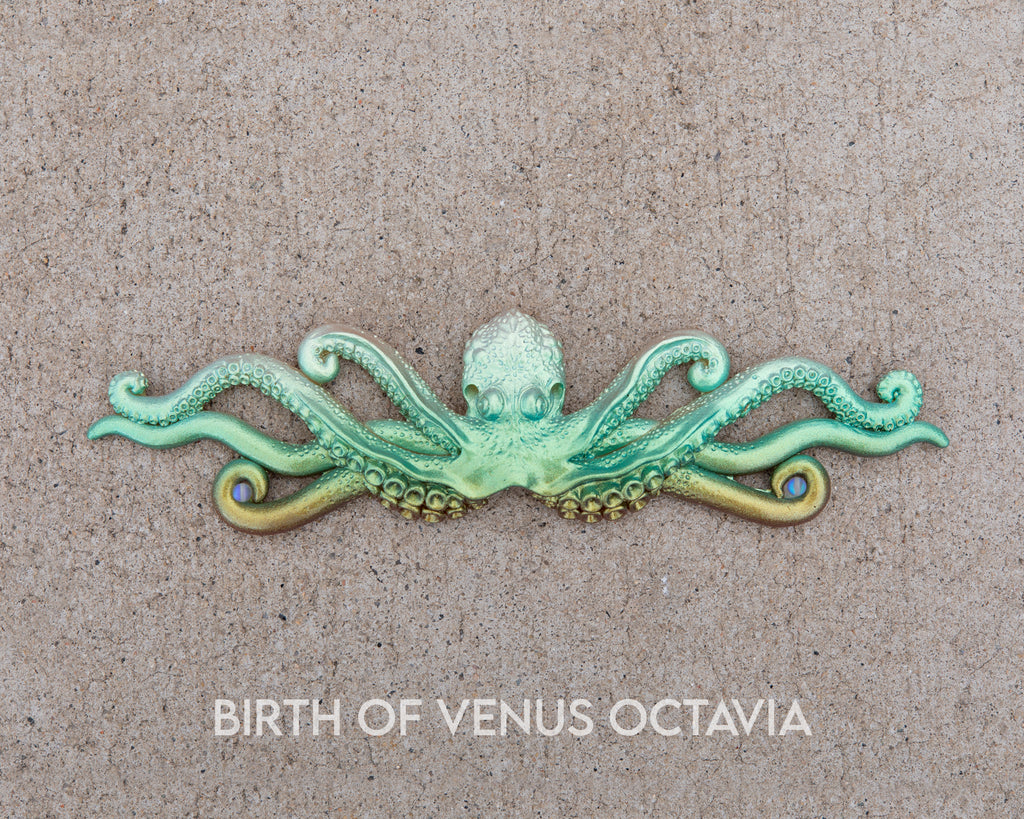 The octopus itself measures approximately 12 inches long by 3 inches wide. Circlets are sent with elastic band straps already attached for immediate wear. Ribbon and beads may vary.