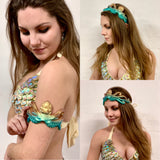 Our gorgeous Octavia circlet is made from the same platinum cure silicone and paints as our full silicone tops and mermaid tails. They are skin safe, water safe, and will last for years to come! Originally made to be worn as crowns, they can also be worn as arm bands, or modified into belts, hair pieces, adhered to tops, or turned into other accessories if desired.