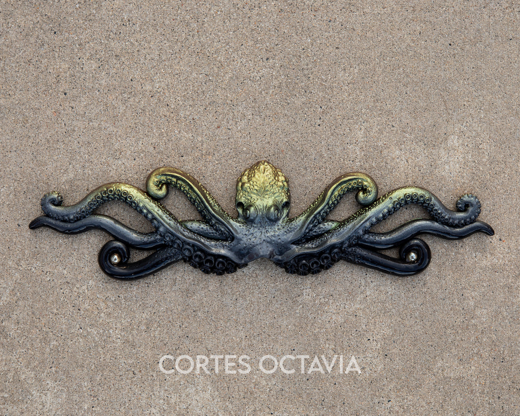 The octopus itself measures approximately 12 inches long by 3 inches wide. Circlets are sent with elastic band straps already attached for immediate wear. Ribbon and beads may vary.