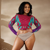 Rep your scales wherever you go with this cropped rash guard! It protects from the sun, wind, and other elements whether on land or in sea!