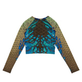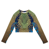 Rep your scales wherever you go with this cropped rash guard! It protects from the sun, wind, and other elements whether on land or in sea!