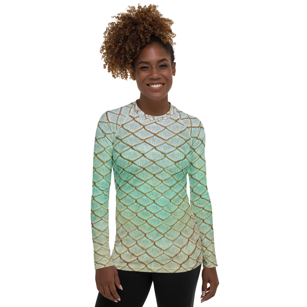 Rep your scales wherever you go with this relaxed fit rash guard! It protects from the sun, wind, and other elements whether on land or in sea!