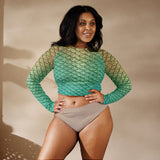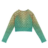Rep your scales wherever you go with this cropped rash guard! It protects from the sun, wind, and other elements whether on land or in sea!