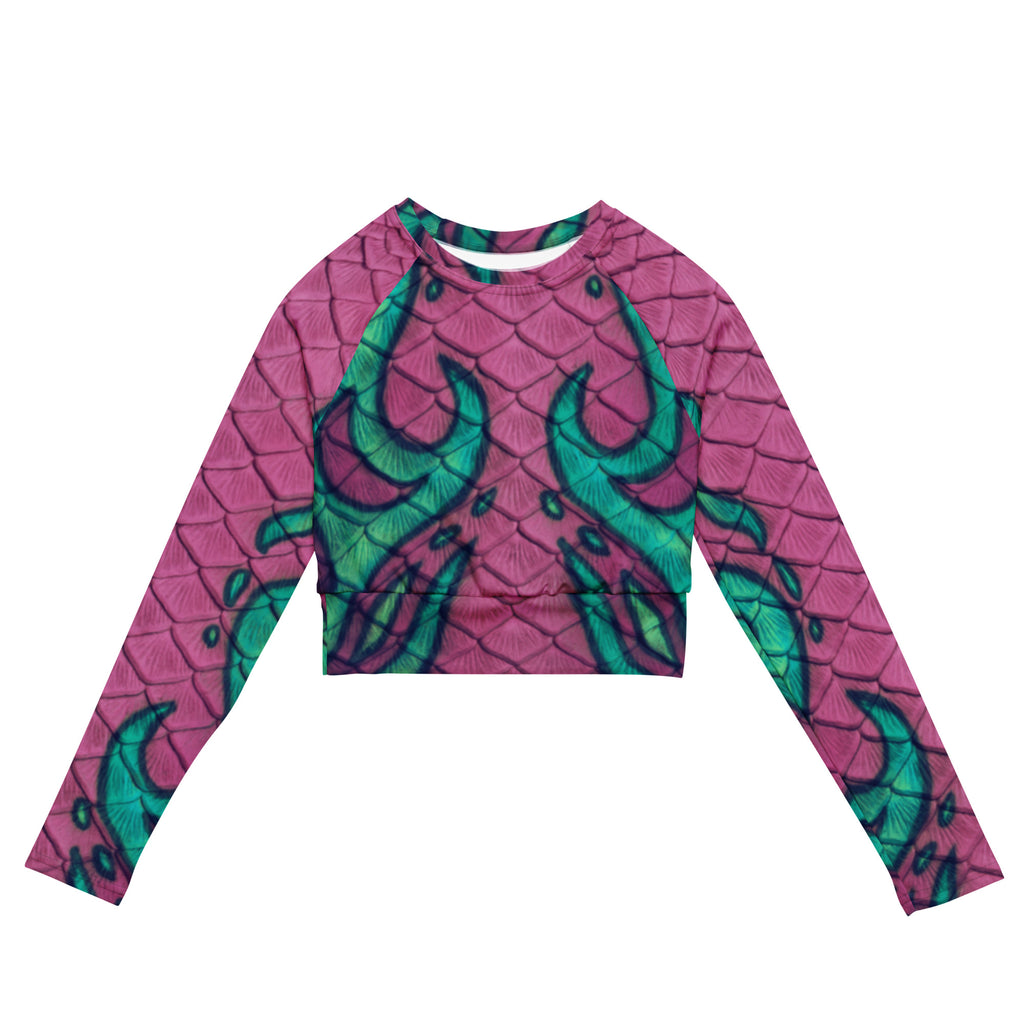 Rep your scales wherever you go with this cropped rash guard! It protects from the sun, wind, and other elements whether on land or in sea!