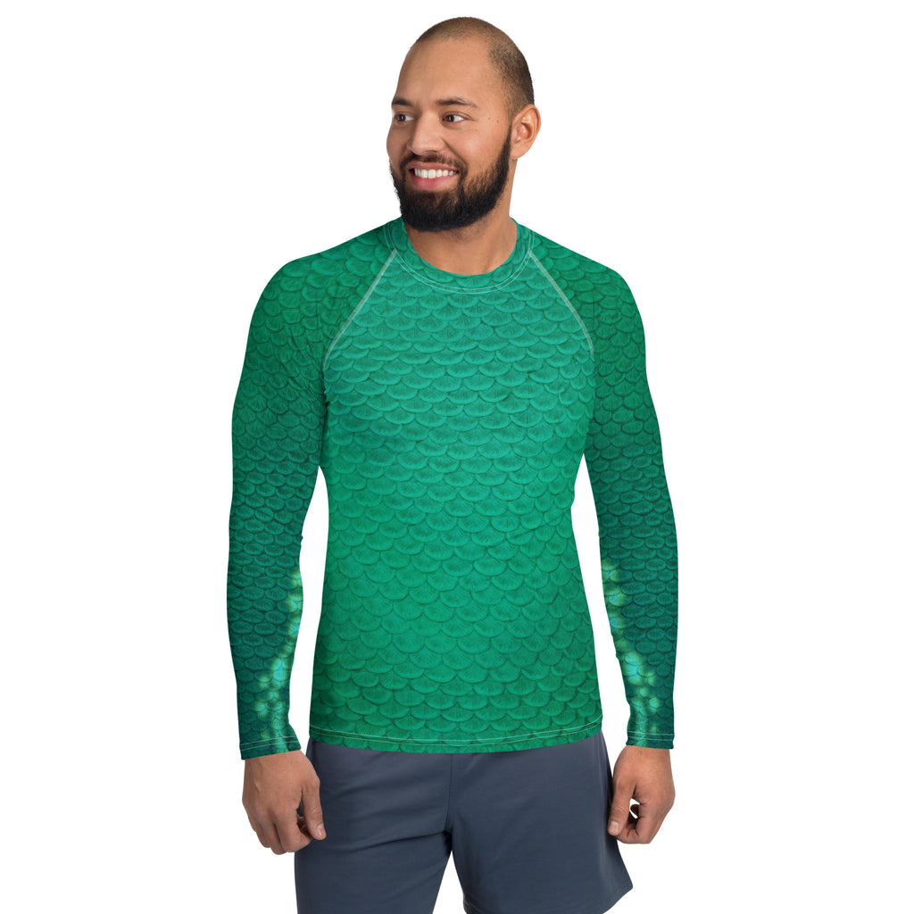 Rep your scales wherever you go with this relaxed fit rash guard! It protects from the sun, wind, and other elements whether on land or in sea! All apparel is made to order here in the USA! Please allow approximately 7-10 days for creation and shipping. Please note stripe alignment may vary due to the curved nature of these garments. FEATURES: 82% polyester, 18% spandex Very soft four-way stretch fabric that stretches and recovers on the cross and lengthwise grains UPF 50+ Comfortable longer body and sleeves Flat seam and coverstitch Blank product components sourced from China All cancelled orders will incur a 10% restocking fee