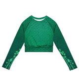 Rep your scales wherever you go with this cropped rash guard! It protects from the sun, wind, and other elements whether on land or in sea!
