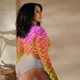Rep your scales wherever you go with this cropped rash guard! It protects from the sun, wind, and other elements whether on land or in sea!