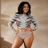 Rep your scales wherever you go with this cropped rash guard! It protects from the sun, wind, and other elements whether on land or in sea!