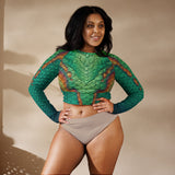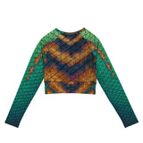 Rep your scales wherever you go with this cropped rash guard! It protects from the sun, wind, and other elements whether on land or in sea!