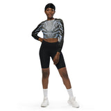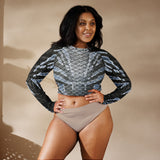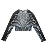 Rep your scales wherever you go with this cropped rash guard! It protects from the sun, wind, and other elements whether on land or in sea!