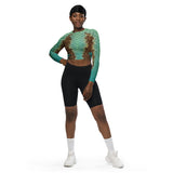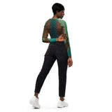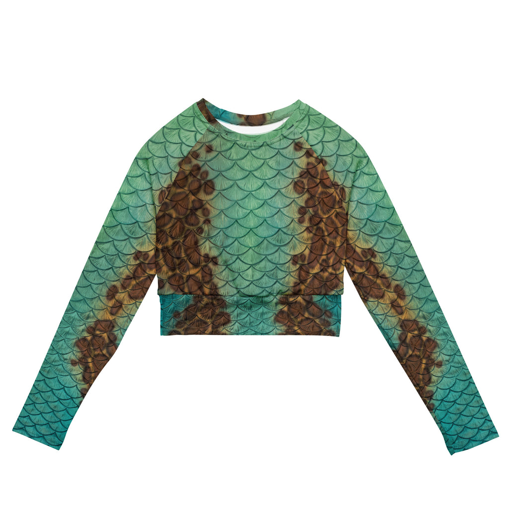 Rep your scales wherever you go with this cropped rash guard! It protects from the sun, wind, and other elements whether on land or in sea!