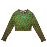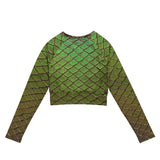 Rep your scales wherever you go with this cropped rash guard! It protects from the sun, wind, and other elements whether on land or in sea!