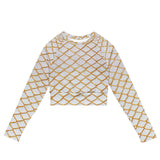 Rep your scales wherever you go with this cropped rash guard! It protects from the sun, wind, and other elements whether on land or in sea!