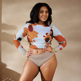 Rep your scales wherever you go with this cropped rash guard! It protects from the sun, wind, and other elements whether on land or in sea!