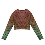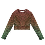 Rep your scales wherever you go with this cropped rash guard! It protects from the sun, wind, and other elements whether on land or in sea!